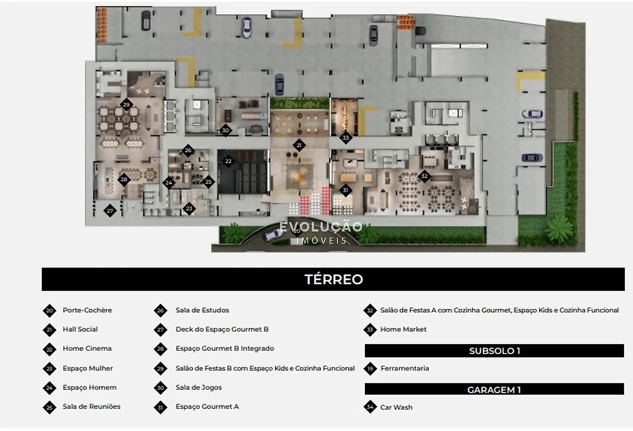 * Salão de festas com espaço kids e cozinha funcional;