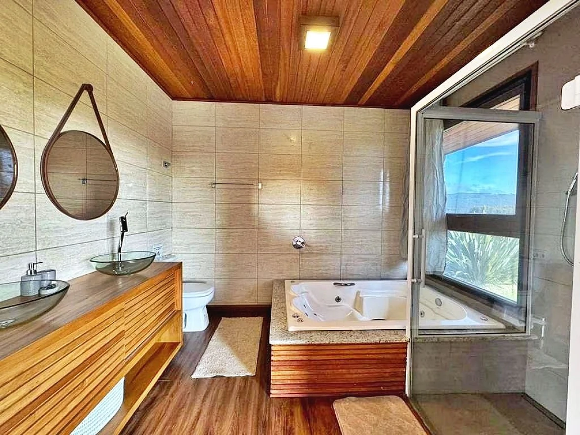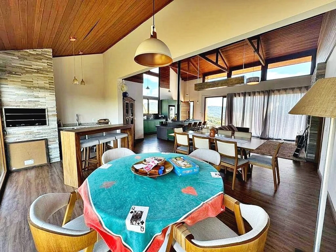 Belíssima Casa de campo TOTALMENTE MOBILIADA, rodeada pela natureza exuberante, com total privacidade, muito sossego e uma linda vista de 360º inesquecível!Num terreno com 6.288,90 m² de área exclusiva, a casa tem área total de 219,95m² assim distribuídos:3 dormitórios sendo 1 suíte com banheira de hidromassagem de frente para um pôr do sol magnífico, ar condicionado em todos os dormitórios, cozinha, sala de jantar, sala de estar, sala de jogos integradas,, lavabo, banheiro social, fogão à lenha, churrasqueira, despensa, lavanderia, estacionamento para quatro carros, pé direito alto, fechadura eletrônica, aquecimento à gás em todas as torneiras. amplo deck com piscina de borda infinita, fire lounge, redário, Condomínio: Zeladoria 24 horas; Portaria; Rede de água e luz;Lagos para pesca; Playground: Sede social com quartos de apoio para convidados; Quiosque com vestiário; Quadra de tênis de saibro; Campo de futebol; Horta comunitária; Trilhas ecológicas com riacho; Internet fibra óptica.Rancho Queimado está localizado a 60 km de Florianópolis, caminho para a Serra Catarinense, tem como municípios limítrofes Alfredo Wagner, Angelina, Anitápolis e Águas Mornas. diferencia-se dos demais municípios principalmente pelos terrenos acidentados, com altitudes em torno de 810 metros e belas paisagens. Já na chegada da cidade a paisagem enche os olhos. Nos contornos da Serra da Boa Vista, exuberantes belezas naturais revelam-se pouco a pouco, misturando a paisagem de montanha com o cenário rural. A região é pontilhada por rios, cascatas, piscinas naturais, estradas e jardins floridos. O Clima Temperado úmido, com temperatura média entre 10 C a 25 C. Atividades Econômicas: a principal economia é a agricultura. A EVOLUÇÃO IMÓVEIS possui mais de 17 anos de experiência, sempre satisfazendo nossos clientes e fazendo amigos. Temos mais de 2000 imóveis com diversas opções na Grande Florianópolis.Estamos de plantão através do número (48) 99972-5063 ou no CHAT.Concretizando seus Sonhos.