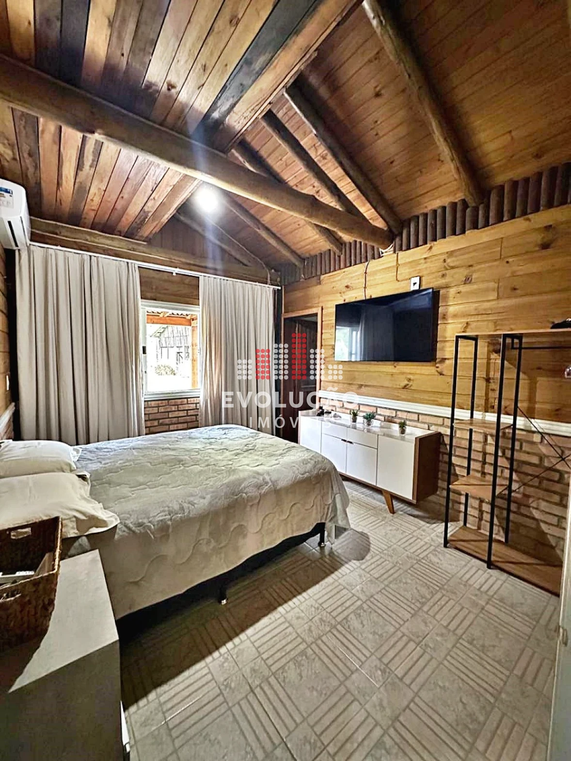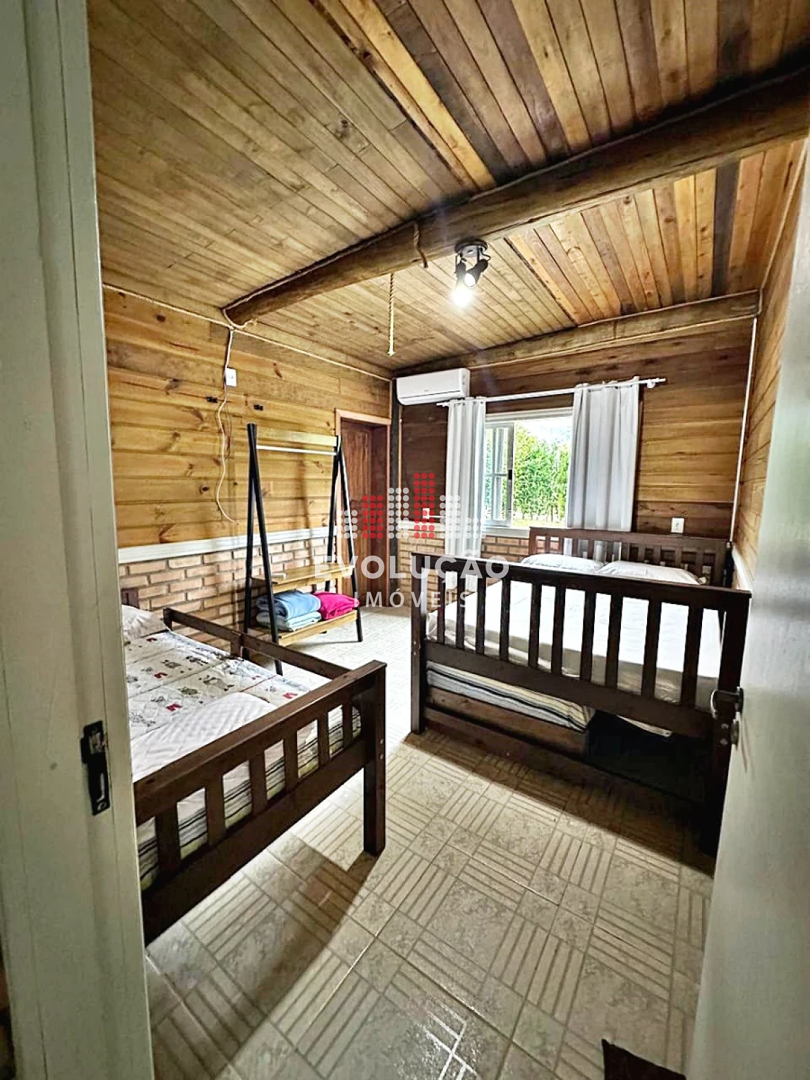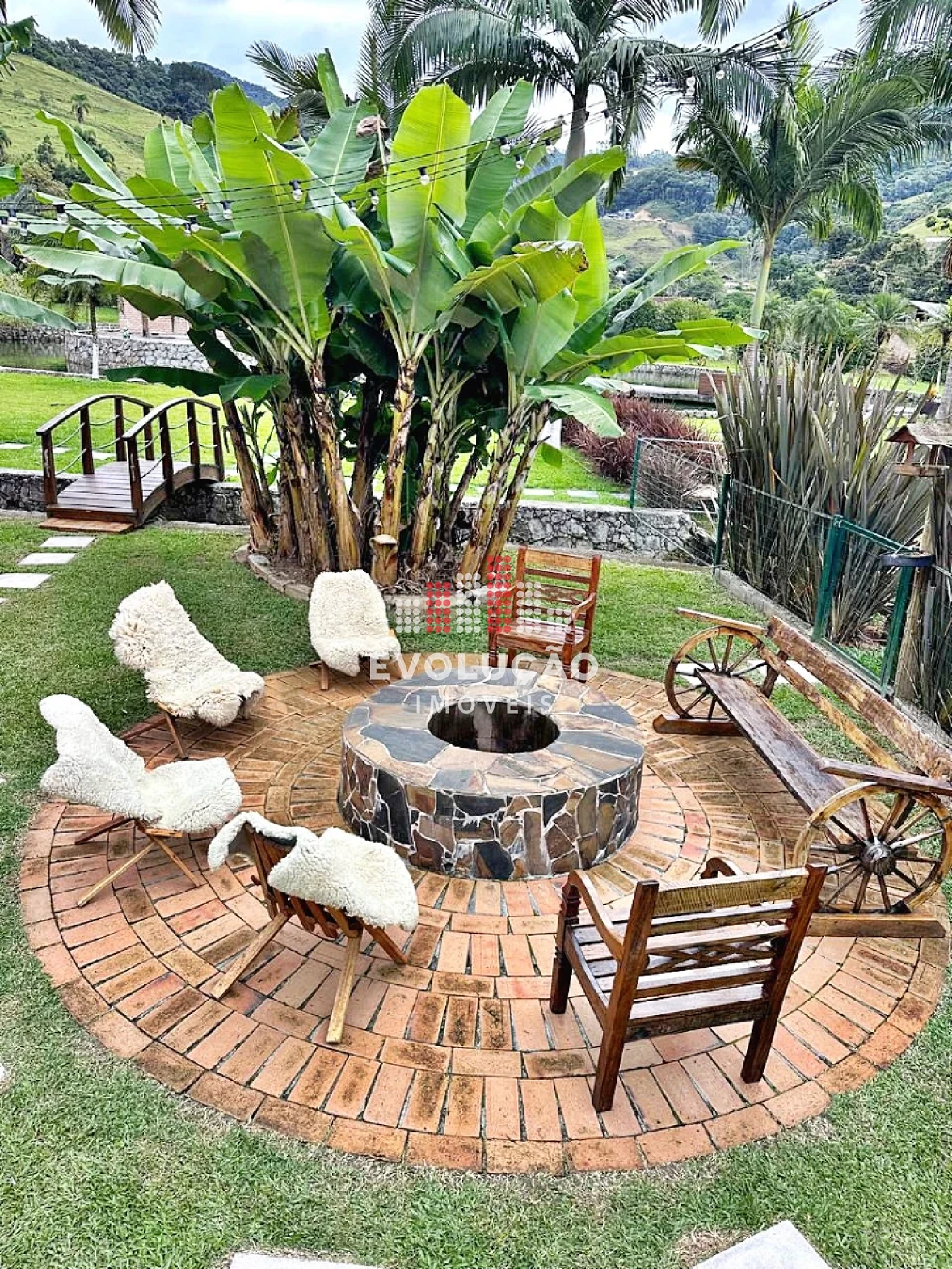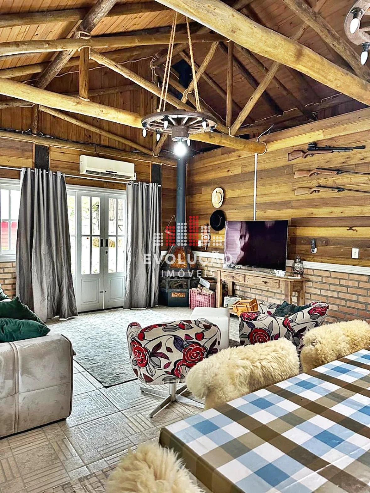 * Rancho estilo Americano, onde possui 2 pavimentos, onde possui 1 dormitório no piso superior, com um completo espaço gourmet, contendo forno, fogão a lenha, churrasqueira, espaço para ordenha e tratamento para animais confinados;